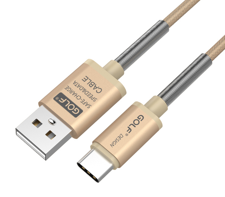 GOLF Καλώδιο USB 2.0 σε Type-C, Fast Charging Sync, Braided, 1m, Gold