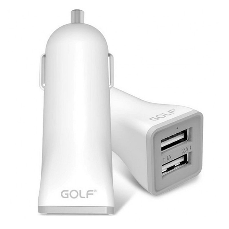 GOLF Φορτιστής αυτοκινήτου GF-C2, 2x output 2.1A, Λευκός