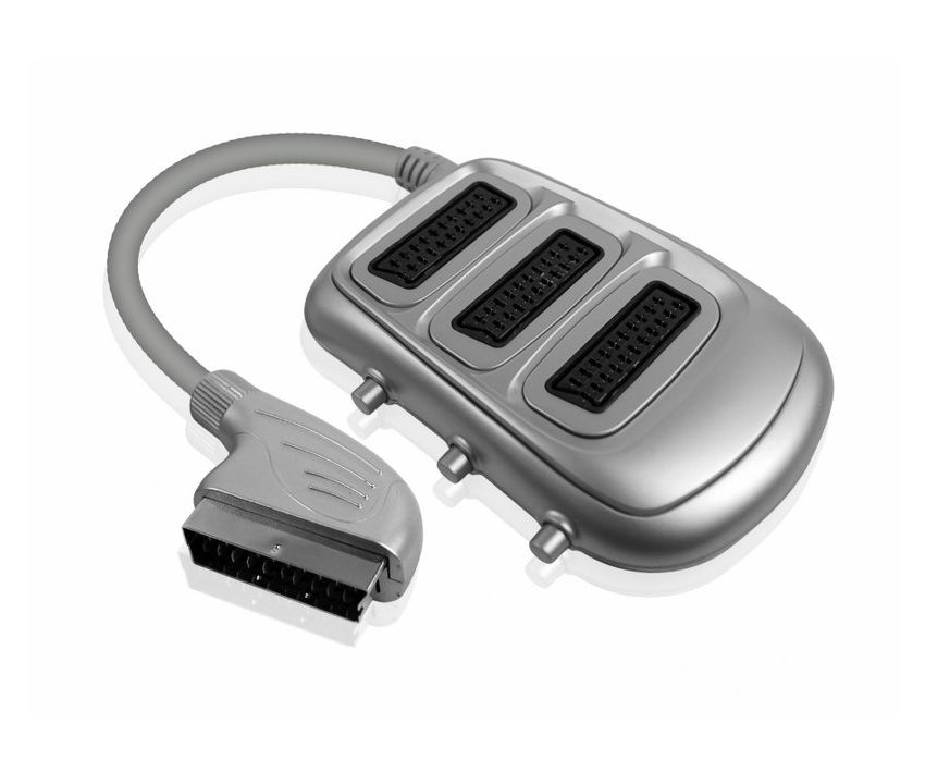 POWERTECH SCART Πολύπριζο με διακόπτη, x3, Ασημί